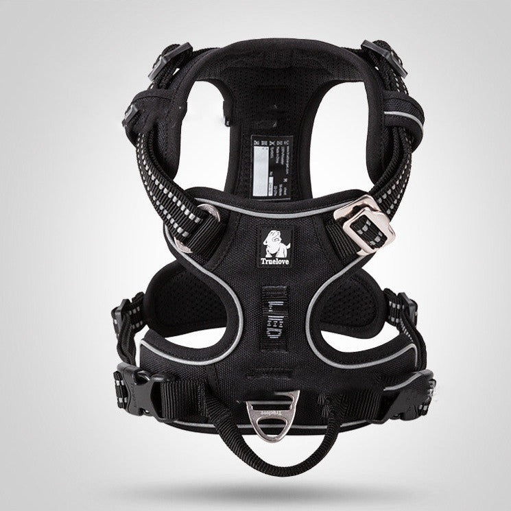 The Quick-Release Buckles make putting on and taking off the GloStrip™ harness a breeze. Fully adjustable straps at the chest and neck allow for a custom fit. Whether it's a leisurely walk, a run, training, or a hike, this harness adapts to your dog's needs, offering both convenience and confidence.
